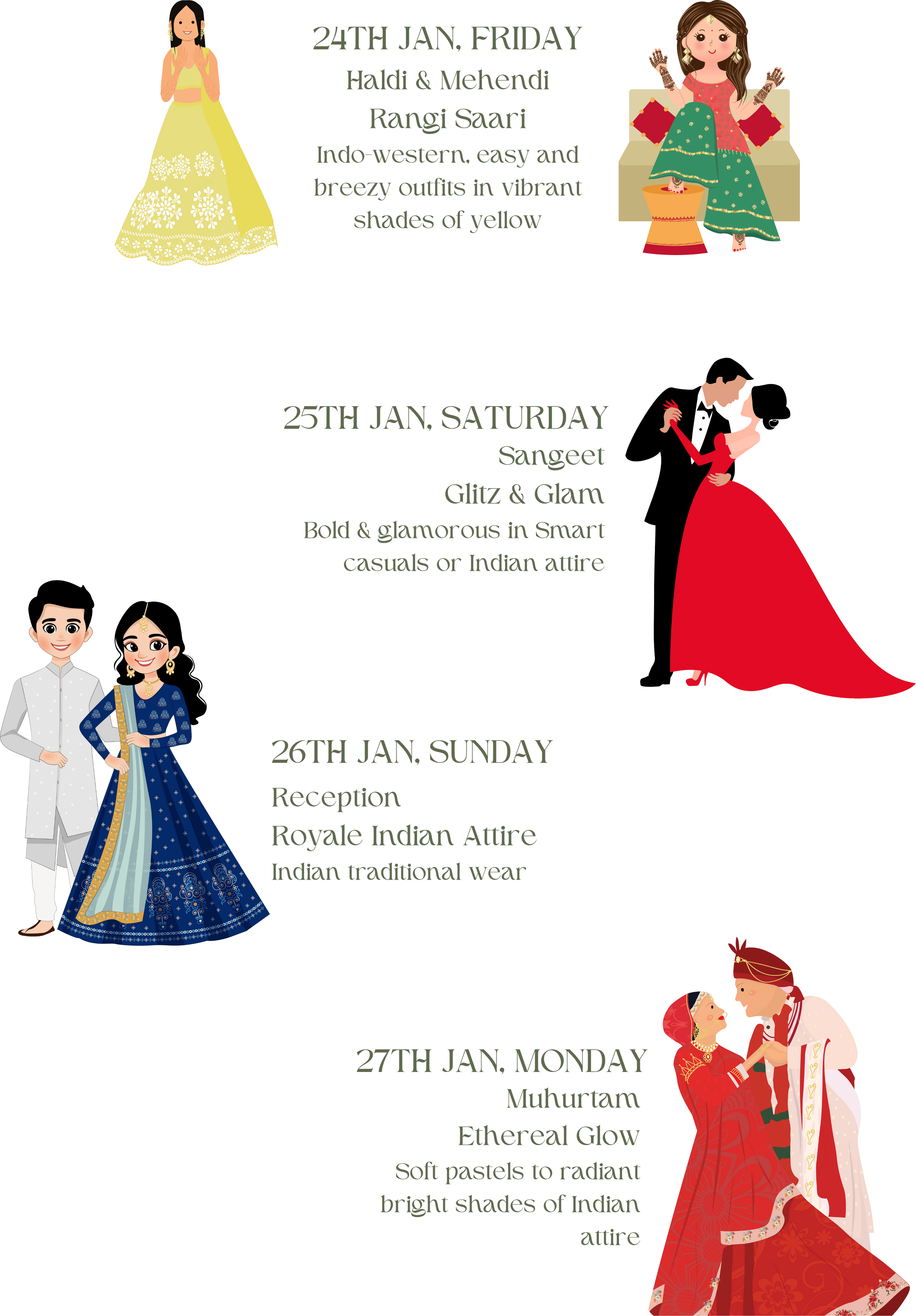 Each celebration calls for its own style vibe, so here’s your cheat sheet for looking fabulous! From twirl-worthy colors to sparkle-perfect fits, we’ve got all the fashion cues lined up. Let’s make it a runway, one event at a time!